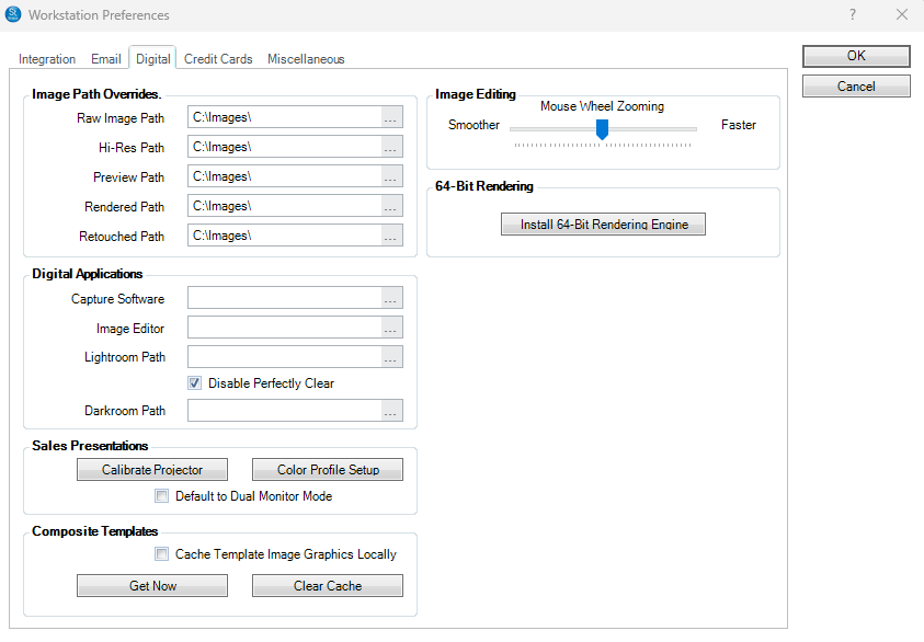 Darkroom Path - Browse and select the path to Express Digital Darkroom on this workstation (i.e., the DarkroomPro.EXE program file). The software will use this path if you choose to open images in Darkroom for pre-touch and organization.